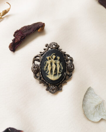 Three Graces cameo brooch, Victorian inspired elegant silver metal brooch.